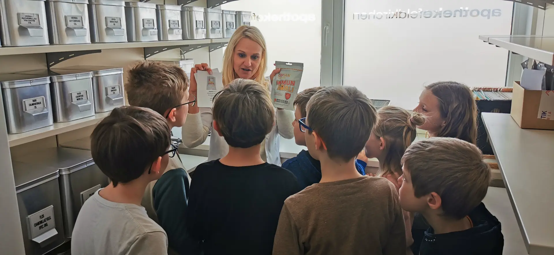 Am Donnerstag, den 10.4.2025 haben uns die dritten Klassen der Volksschule Feldkirchen besucht, um sich unsere Apotheke näher anzuschauen.